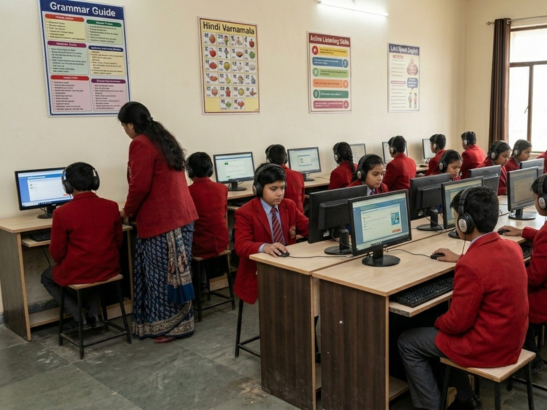 Modi School believes that effective communication is an essential part of holistic education. Our dedicated language lab in school provides students with a structured and technology-enabled platform to strengthen speaking and listening skills from an early stage.
